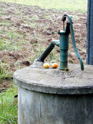 nicht mehr achtend, bis zu den Knien war schon alles patschnass, bis ich auf