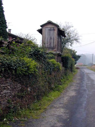 Der Hórreo stützt sich auf den die Calzada begleitenden Mauern ab.